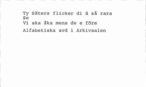 //// Ty Säters flicker di ä så rara Se //// Vi ska åka mens de e före Alfabetiska avd i Arkivsalen ////