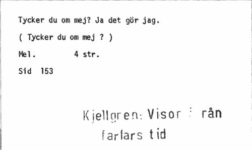 //// Tycker du om mej? Ja det gör jag. ( Tycker du om mej ? ) Mel. 4 str. //// Sid 153 //// Kjellgren: Visor : rån farlars tid ////