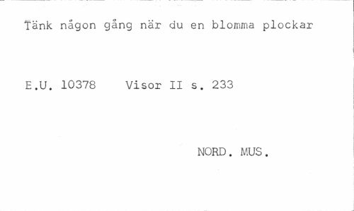 //// tänk någon gång när du en blomma plockar E.U. 10378 Visor II s. 233 //// NORD. MUS. ////