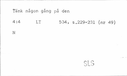 //// Tänk någon gång på den //// 4:4 LT 534, s.229-231 (nr 49) //// N //// SLS ////