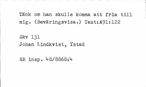 //// Tänk om han skulle komma att fria till mig. (Beväringsvisa.) TextjA91:122 //// Skv 131 //// Johan T.indkvist, Ystad SR insp. W8868;l+ ////