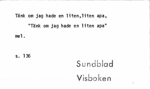 //// Tänk om jag hade en liten.liten apa, "Tänk om jag hade en liten apa" //// mel. s. 136 //// Sundbiad Visboken ////