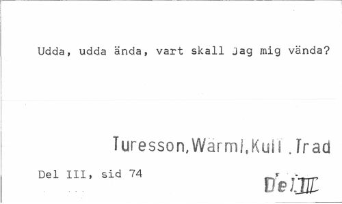 //// Udda, udda ända, vart skall Jag mig vända? //// Turesson,Wärml.Kull .frad //// Del III, sid 74 r . //// De/JK ////