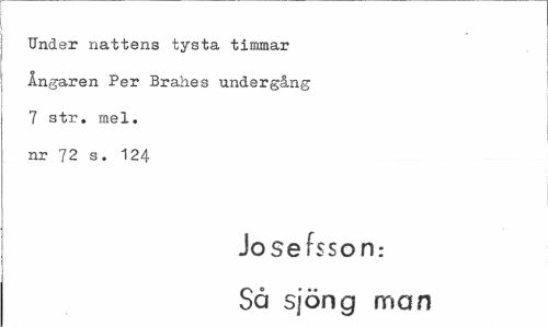 //// Under nattens tysta timmar Ångaren Per Brahes undergång 7 str. mel. nr 72 s. 124 //// Josefsson: Så sjöng man ////
