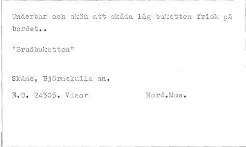 //// Underbar och skön att skåda låg buketten frisk på bordet.. //// "Brudbuketten" //// Skåne, Björnekulla sn. //// E.U. 24305. Visor Nord.Mus. ////
