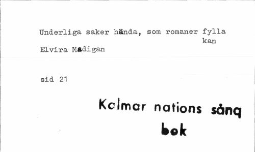 //// Underliga saker hända, som romaner fylla //// kan //// Elvira Mftdigan sid 21 //// Kclmar nations sånq ////