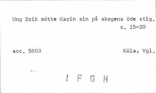 //// Ung Erik mötte Karin sin på skogens öde stig. //// s. 15-20 //// acc. 5803 Köla, Vgl, //// I F G H ////