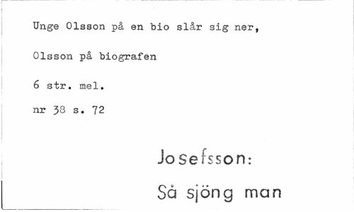 //// Unge Olsson på en bio slår sig ner, //// Olsson på biografen //// 6 str. mel. nr 38 s. 72 //// Josefsson: Så sjöng man ////