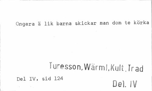 //// Ongera ä lik barna skickar man dom te korka //// Turesson, Wärm!, Kult. Trad //// Del IV, sid 124 //// Del. IV ////