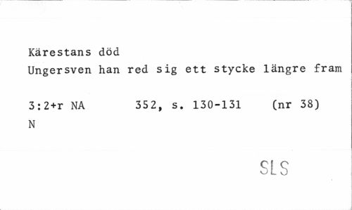 //// Kärestans död //// Ungersven han red sig ett stycke längre fram //// 3:2+r NA 352, s. 130-131 (nr 38) //// N //// SL S ////
