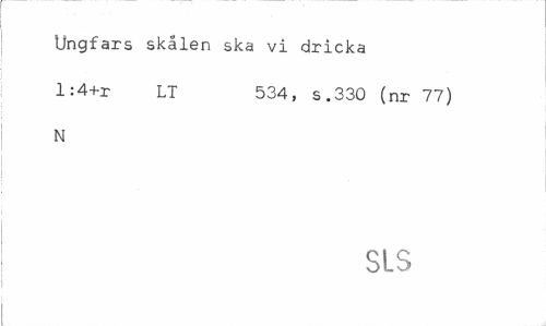 //// Ungfars skålen ska vi dricka //// l:4+r LT 534, s.330 (nr 77) //// N //// SIS ////
