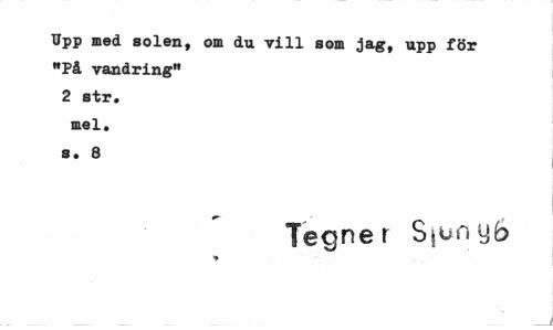 //// Upp med solen, om du vill som jag, upp för "På vandring" 2 str. mel. s. 8 //// Tegner Sjunyb //// * ////