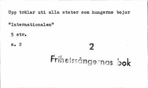 //// Upp trälar uti alla stater som hungerns bojor //// "Internationalen" 5 str. //// s. 2 ^ //// Frihetssångernas i>ok ////