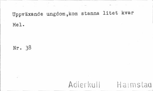 //// Uppväxande ungdom,kom stanna litet kvar Mel. //// Nr. 38 //// Ädle r ku i I Haimstaa ////