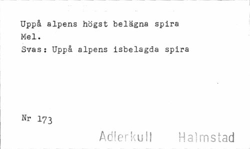 //// Uppå alpens högst belägna spira Mel. //// Svas: Uppå alpens isbelagda spira Nr l73 //// Adlerku! I Halmstad ////