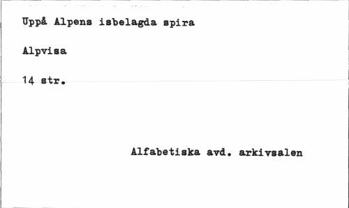 //// TJppå Alpens isbelagda spira //// Alpvisa //// 14 str. //// Alfabetiska avd. arkivsalen ////