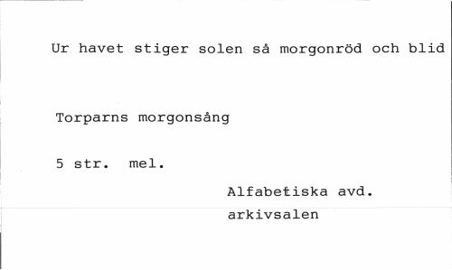 //// Ur havet stiger solen så morgonröd och blid //// Torparns morgonsång 5 str. mel. //// Alfabetiska avd. arkivsalen ////