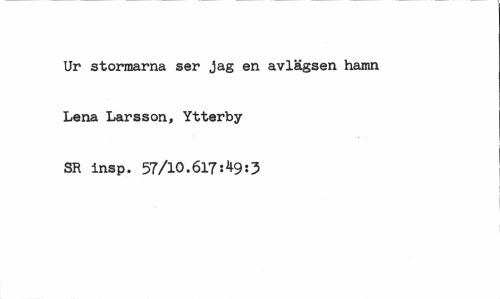 //// Ur stormarna ser jag en avlägsen hamn Lena Larsson, Ytterby SR insp. 57/10.617:49:3 ////
