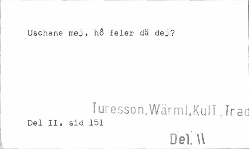 //// Uschane mej, hö feler da dej? //// Turesson, Wärml.KulMrac //// Del II, sid 151 //// Del. U ////