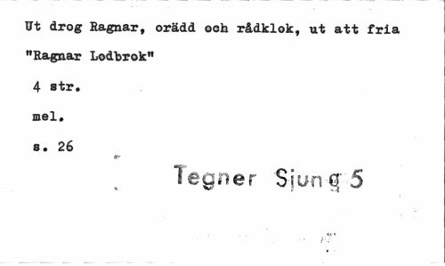 //// Ut drog Ragnar, orädd och rådklok, ut att fria "Ragnar Lodbrok" 4 str. mel. s. 26 //// Tegner Siunf S ////