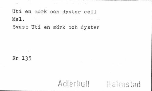 //// Uti en mörk och dyster cell Mel. //// Svas: Uti en mörk och dyster Nr 135 //// Adlerkull Halmstad ////