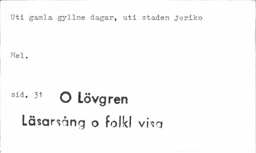 //// Uti gamla gyllne dagar, uti staden Jeriko Mel. //// sid. 31 q Lövgren //// Läsarsång o folk! visq ////