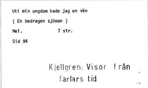 //// Uti min ungdom hade jag en vän ( En bedragen sjöman ) Mel. 7 str. //// Sid 94 //// K jellgren: Visor f rån farfars tid ////