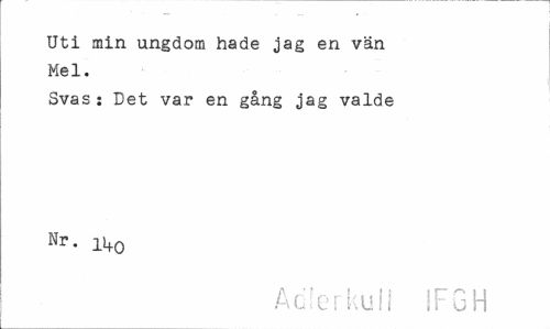 //// Uti min ungdom hade jag en vän Mel. //// Svas: Det var en gång jag valde Nr. lkQ //// Adlerkull IF G H ////
