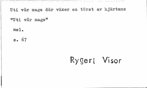 //// Uti vår mage där växer en törst av hjärtans "Uti vår mage" mel. s. 67 //// Rygert Visor ////