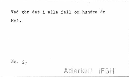 //// Vad gör det i alla fall om hundra år //// Mel. //// Nr. 65 //// Adterkul! IFGH ////