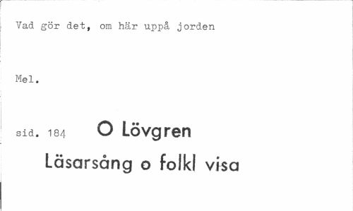 //// Vad gör det, om här uppå jorden Mel. //// sid. 184 O Lövgren Läsarsång o foikl visa ////