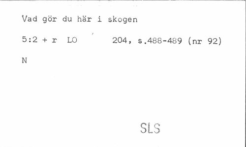 //// Vad gör du här i skogen //// 5:2 + r LO 204, s.488-489 (nr 92) //// N //// SLS ////
