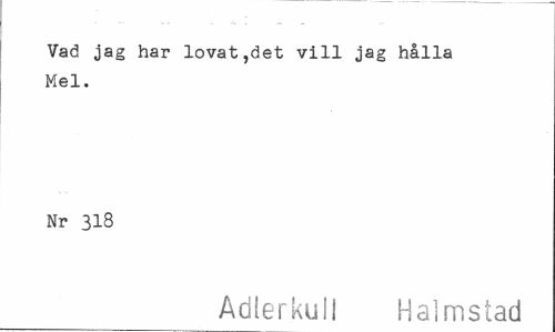 //// Vad jag har lovat,det vill jag hålla Mel. //// Nr 318 //// Adlerkuil Halmstad ////