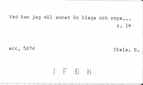 //// Vad kan jag väl annat än klaga och ropa... //// s. 14 //// acc- 5874 Stala, B. //// I F G H ////
