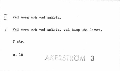 //// Vad sorg och vad smärta. / Vad sorg och vad smärta, vad kamp uti livet, 7 str. //// s. 16 r. |/pr CT?) J^fi i Q //// j t 'i w i V i O ////