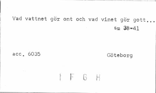 //// Vad vattnet gör ont och vad vinet gör gott... //// sra 31-41 //// acc. 6035 Göteborg //// t F 6 H ////