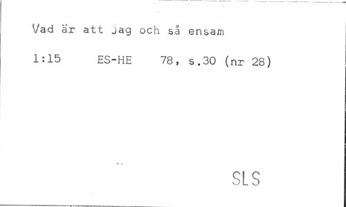 //// Vad ar att jag och så ensam 1:15 ES-HE 78, s.30 (nr 28) //// SLS ////