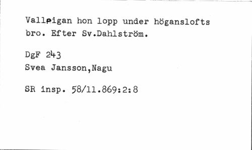 //// Vallpigan hon lopp under höganslofts bro. Efter Sv.Dahlström. //// DgF 2»f3 //// Svea Jansson,Nagu SR insp. 58/11.869:2*8 ////
