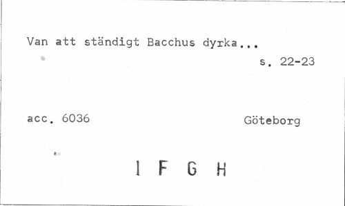 //// Van att ständigt Bacchus dyrka... //// s. 22-23 //// acc. 6036 Göteborg //// 1 F G H ////