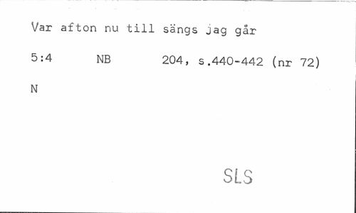 //// Var afton nu till sangs jag går //// 5:4 NB 204, s.440-442 (nr 72) //// N //// SLS ////