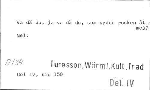 //// Va dä du, ja va dä du, som sydde rocken åt ; //// mej? //// Mel: //// Turesson.Wärml,Kult.Trad //// Del IV, sid 150 //// Del IV ////