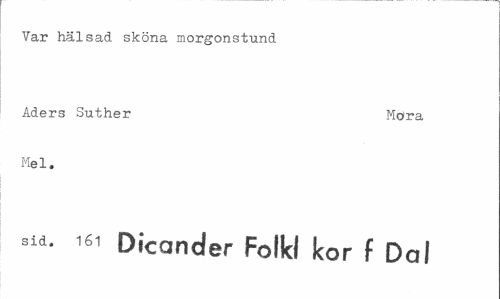 //// Var hälsad sköna morgonstund //// Åders Suther Mora //// Mel. //// sid. 161 Dicander Foikl kor f Dal ////