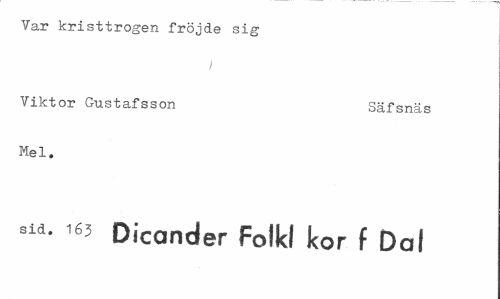 //// Var kristtrogen fröjde sig //// Viktor Gustafsson Säfsnäs //// Mel. //// sid. 163 Dicander Foikl kor f Dal ////
