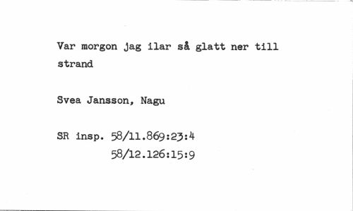 //// Var morgon jag ilar så glatt ner till strand //// Svea Jansson, Nagu //// SR insp. 58/11.869:23:4 58/12.126:15:9 ////