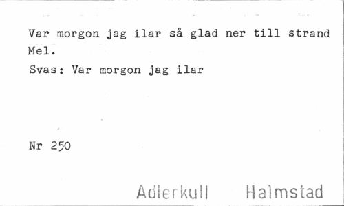 //// Var morgon jag ilar så glad ner till strand Mel. //// Svas: Var morgon jag ilar Nr 250 //// Adlerkull Halmstad ////