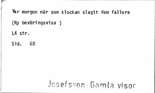 //// Var morgon när som klockan slagit fem fallera (Ny beväringsvisa ) L4 str. Sid. 68 //// Josef s-en: Gamla visor ////
