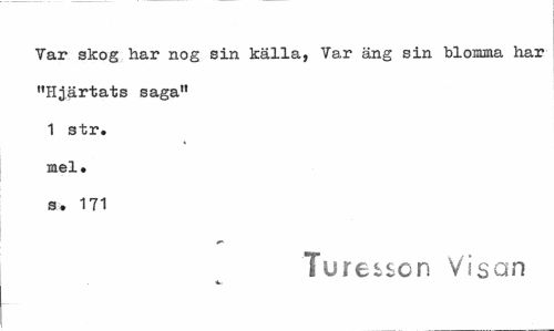 //// Var skog har nog sin källa, Var äng sin blomma har "Hjärtats saga" 1 str. mel» s. 171 //// Tur essen Visan //// -4.. ////