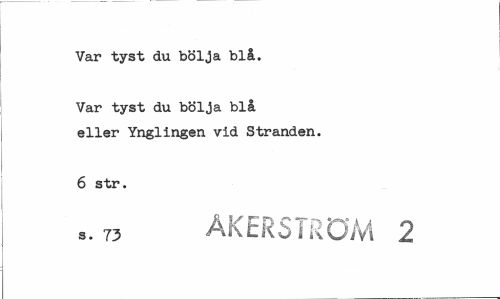 //// Var tyst du bölja blå. //// Var tyst du bölja blå eller Ynglingen vid Stranden. //// 6 str. //// s. 73 ÅKERSTRÖM 2 ////