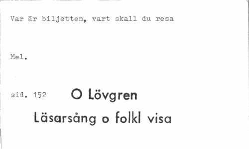 //// Var är biljetten, vart skall du resa Mel. //// sid. 152 O Lövgren //// Lösarsång o folkl visa ////