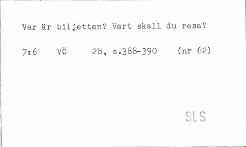//// Var är biljetten? Vart skall du resa? 7:6 VÖ 28, s,388-390 (nr 62) //// SLS ////